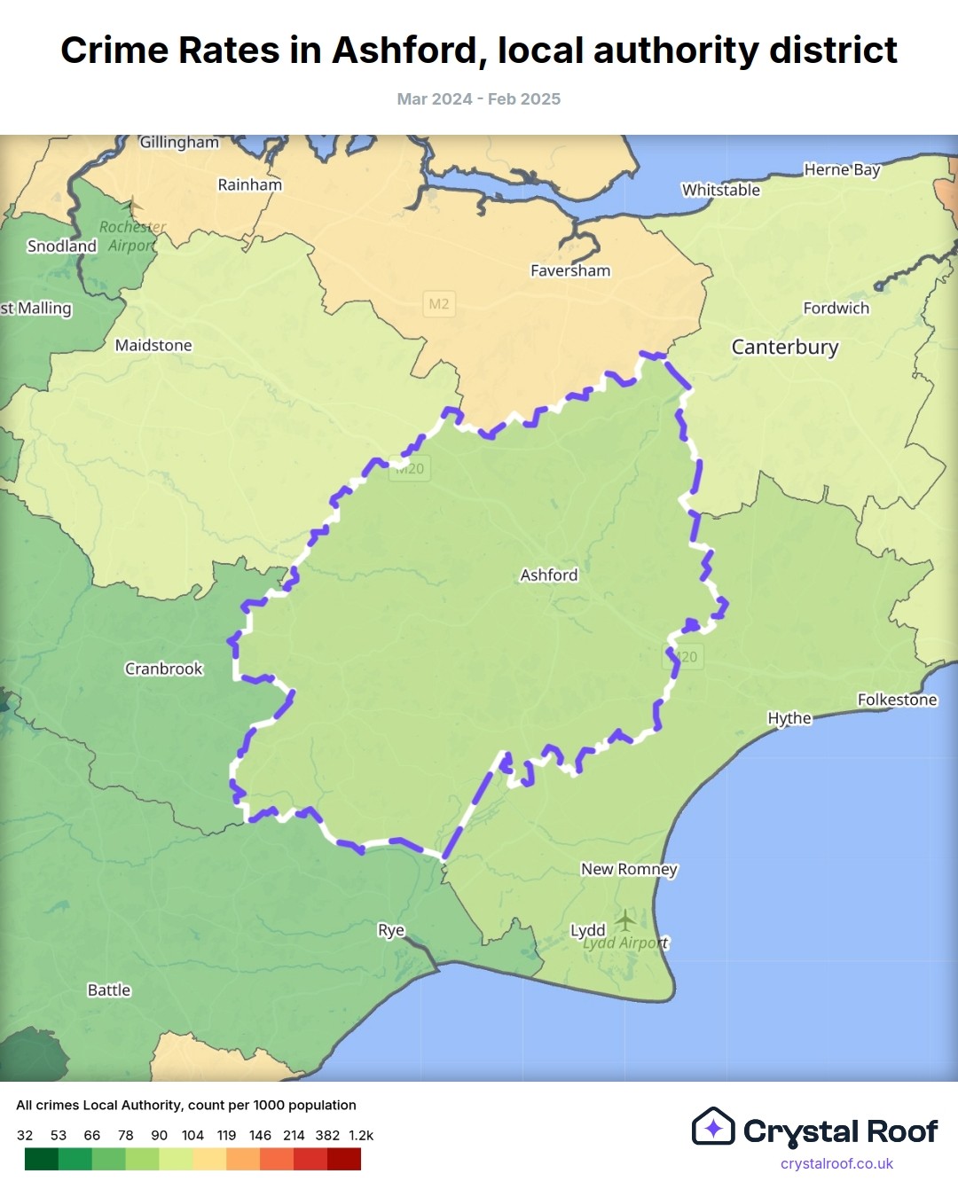 Crime rate ratings in Ashford (local authority district)