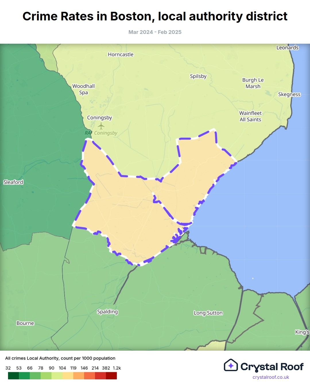 Crime rate ratings in Boston (local authority district)