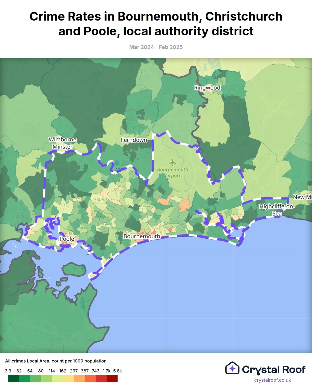 Crime Rates in Bournemouth, Christchurch and Poole, local authority district