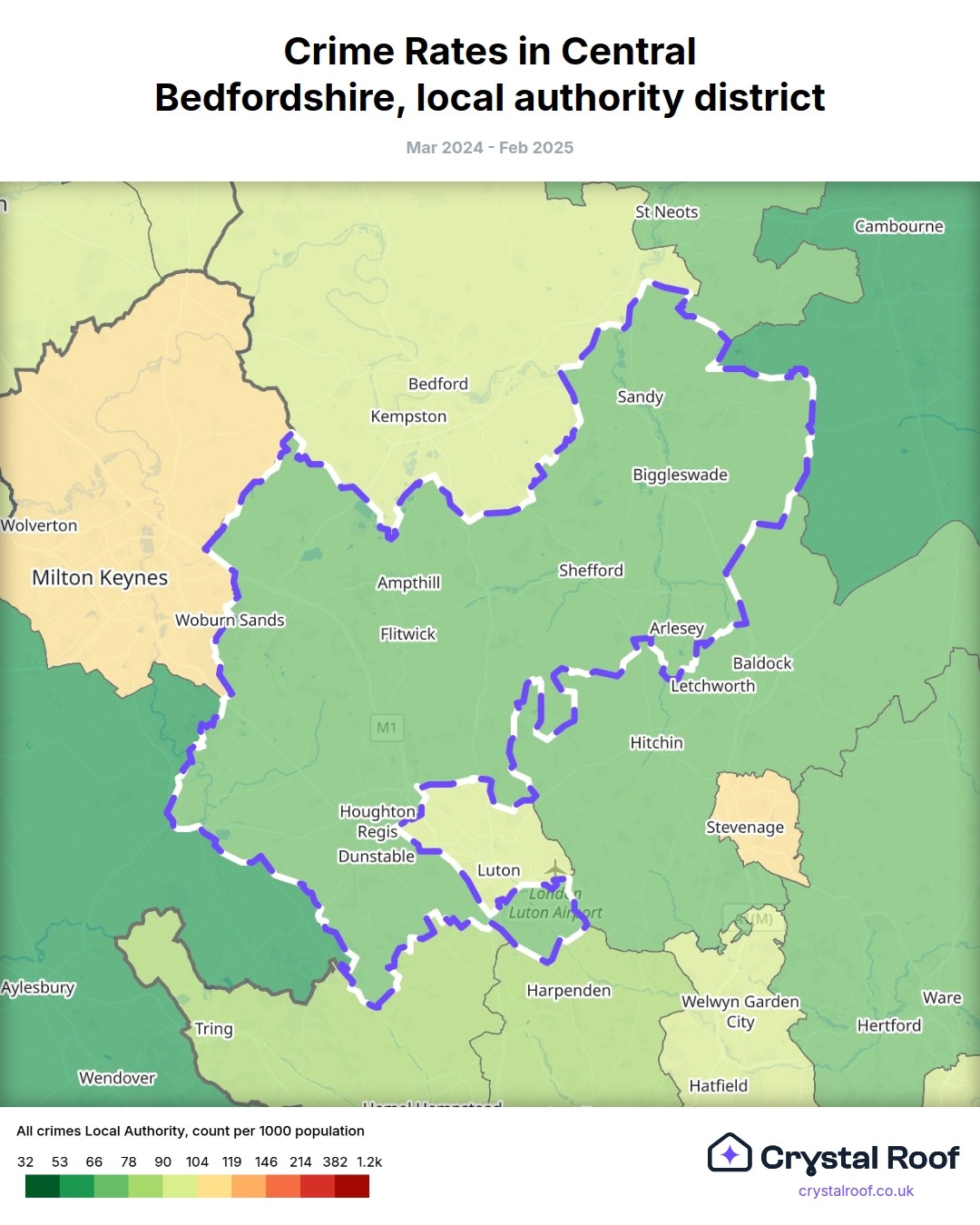 Crime rate ratings in Central Bedfordshire (local authority district)