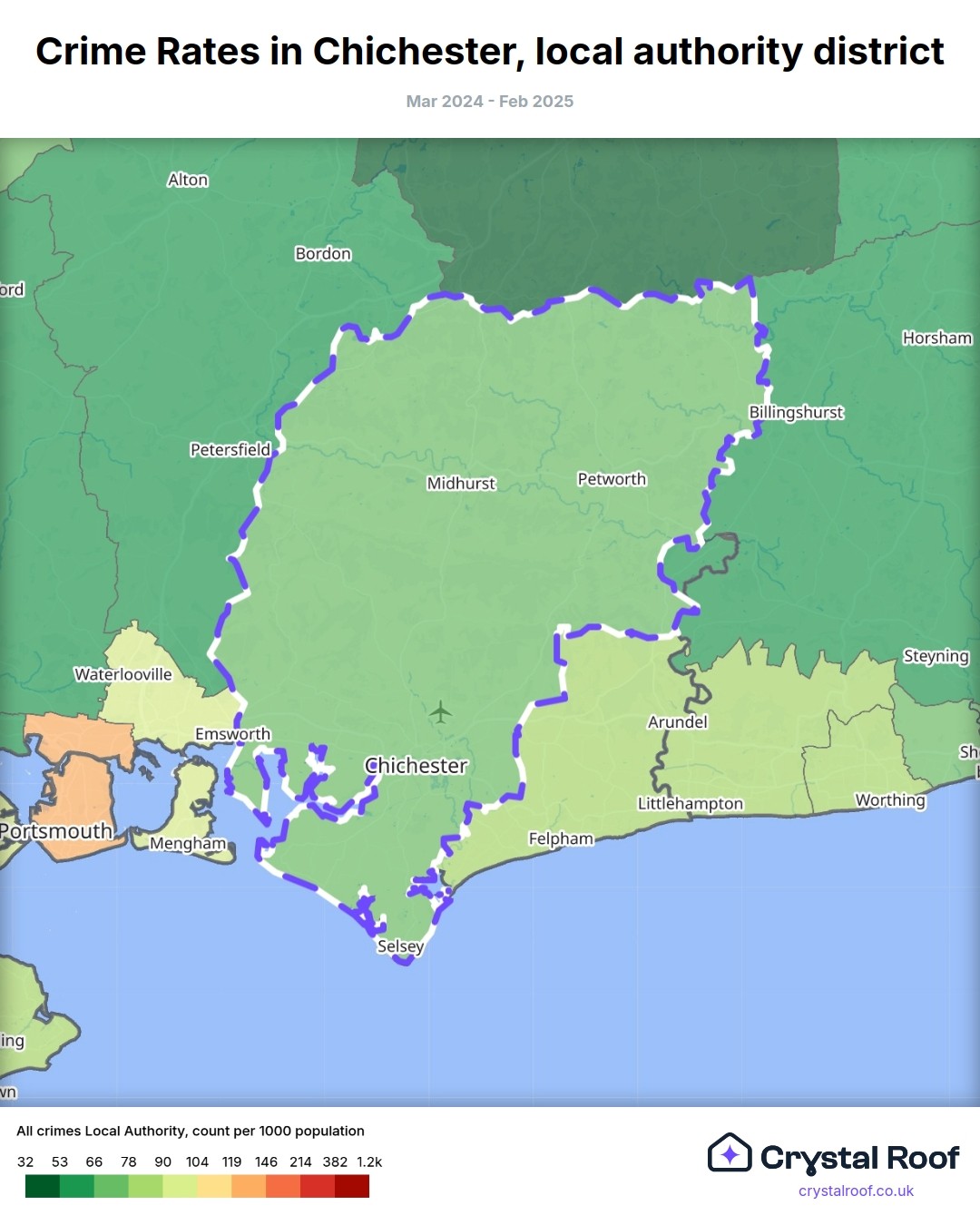 Crime rate ratings in Chichester (local authority district)