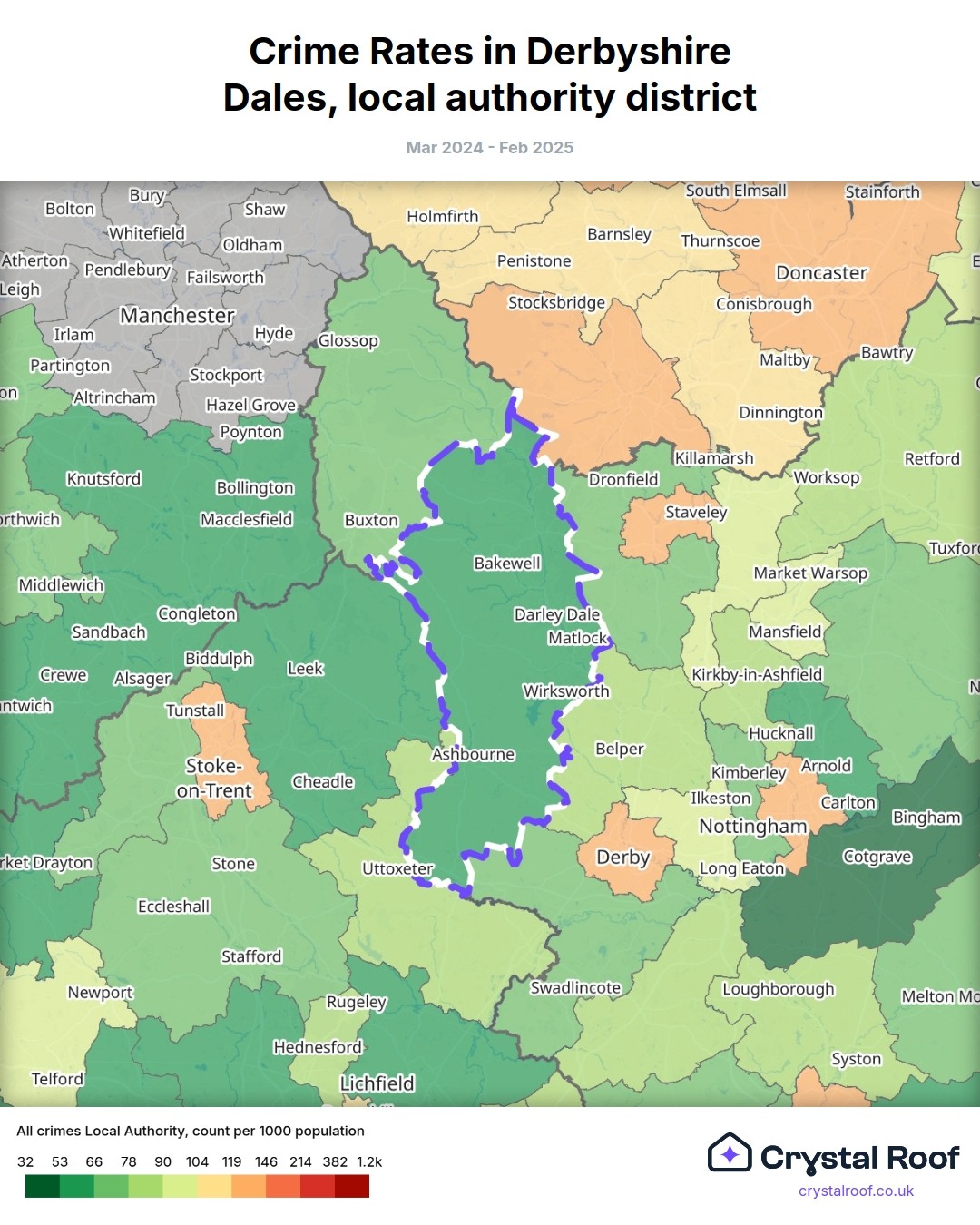 Crime rate ratings in Derbyshire Dales (local authority district)