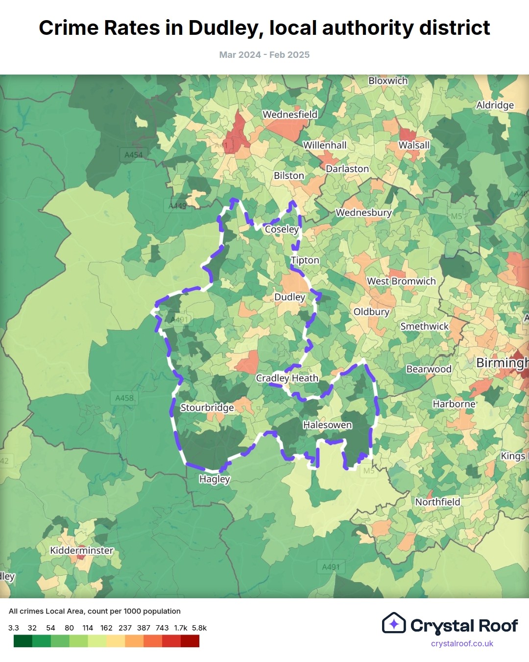 Crime rate ratings in Dudley (local authority district)