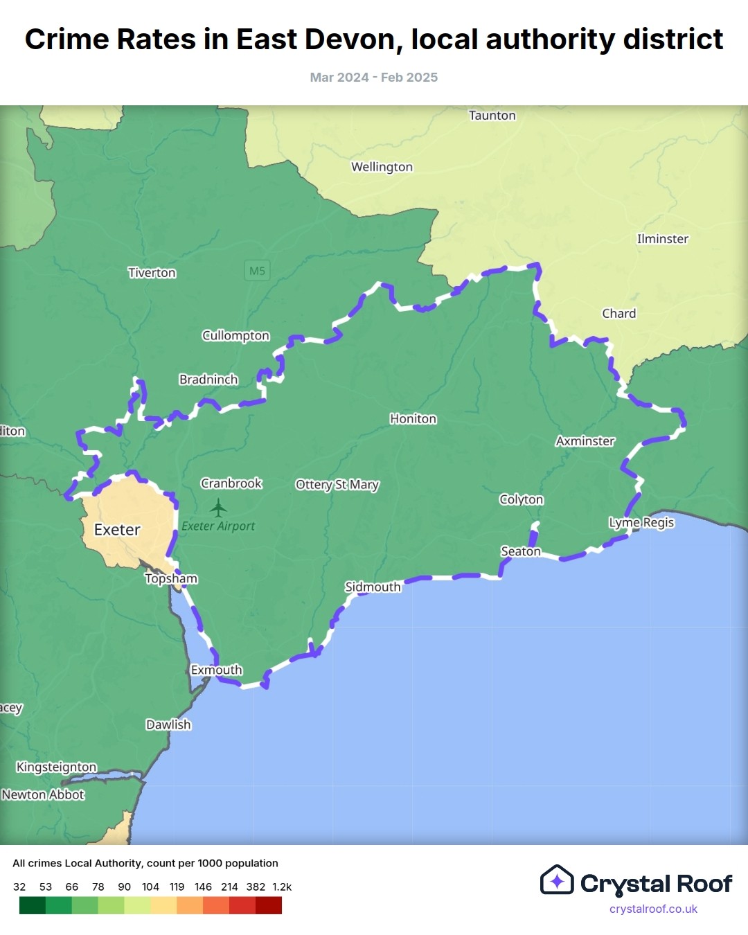 Crime rate ratings in East Devon (local authority district)