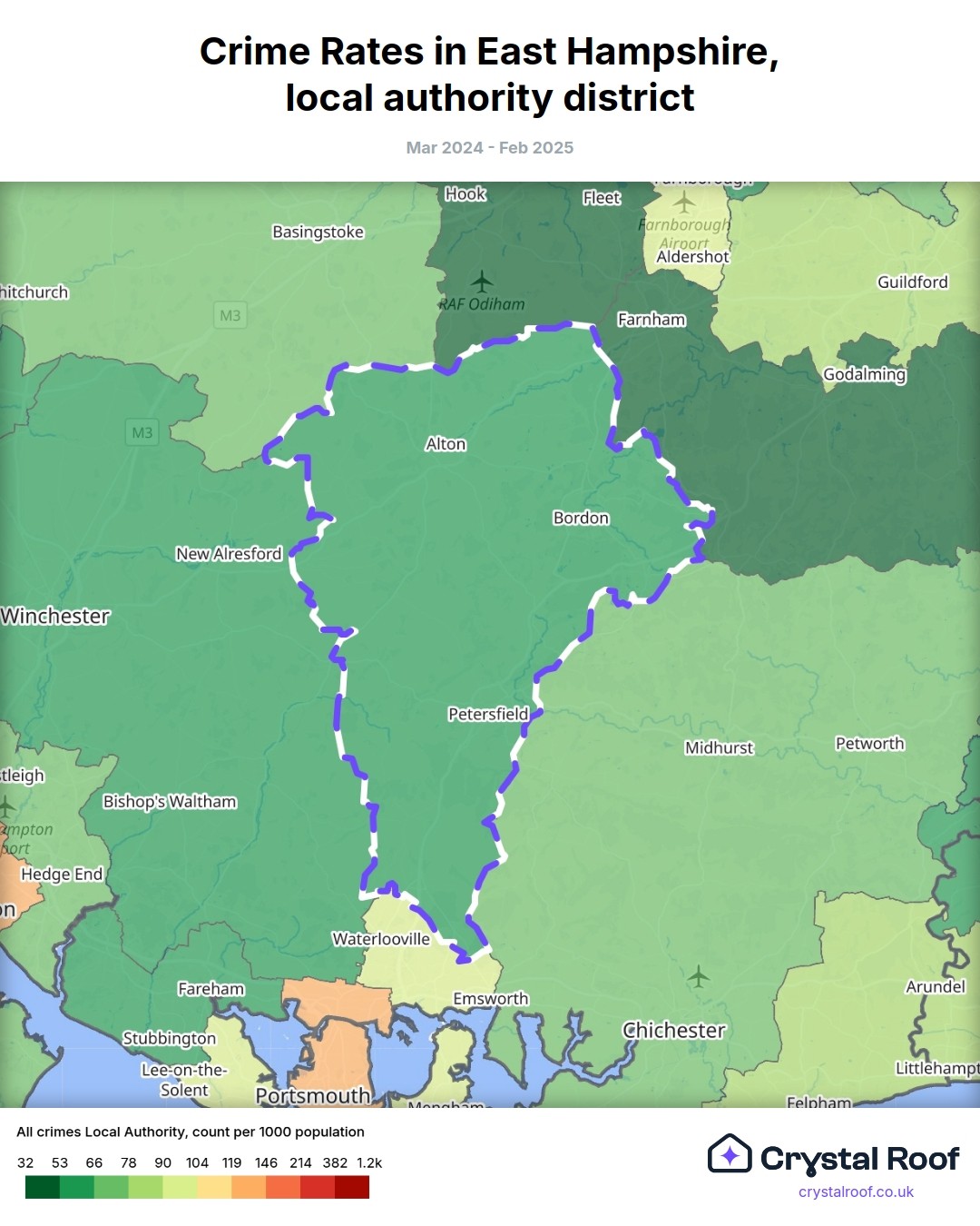 Crime rate ratings in East Hampshire (local authority district)