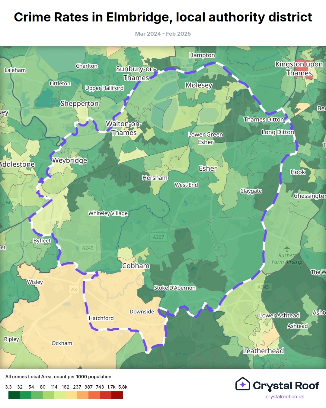 Crime rate ratings in Elmbridge (local authority district)