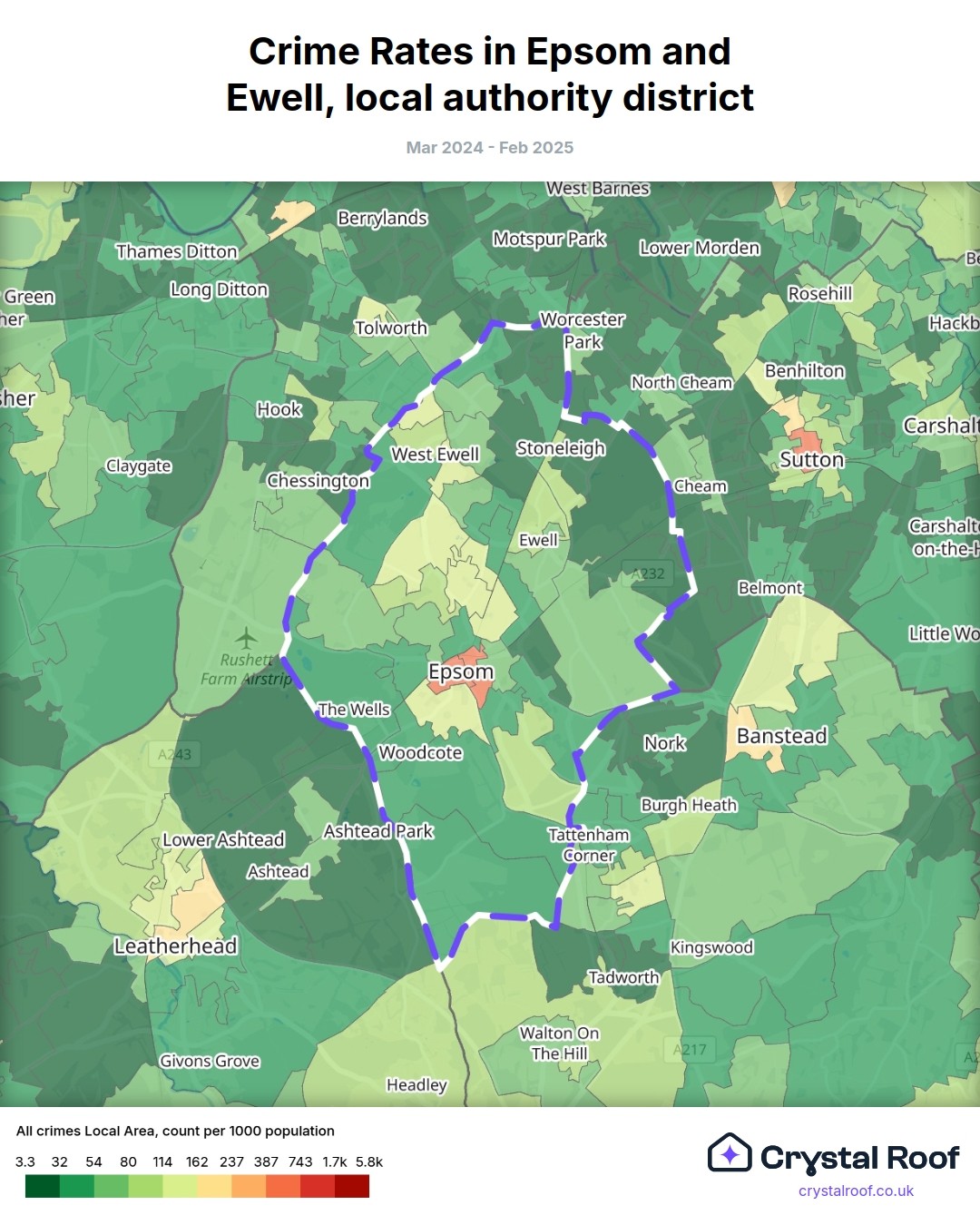 Crime rate ratings in Epsom and Ewell (local authority district)