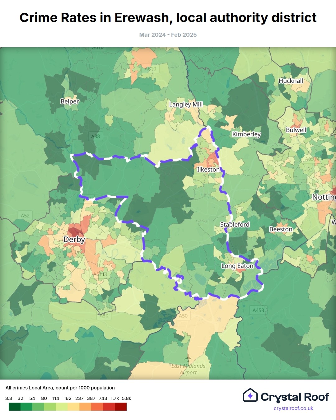 Crime rate ratings in Erewash (local authority district)