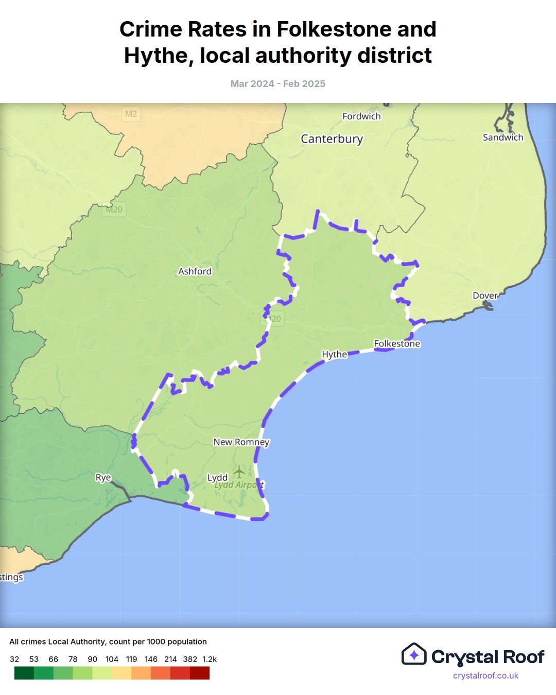 Crime rate ratings in Folkestone and Hythe (local authority district)