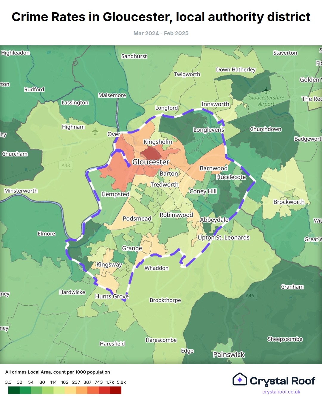 Crime rate ratings in Gloucester (local authority district)