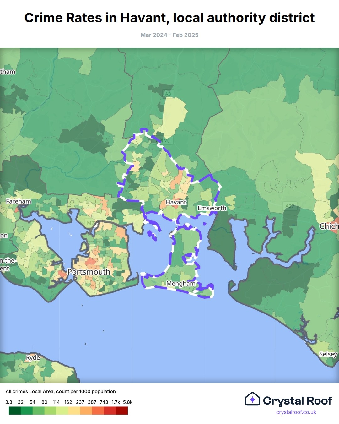 The figures in grey indicate the relative ratings of Havant (local authority district) for a specific crime type compared to other boroughs/local authority districts in England and Wales.