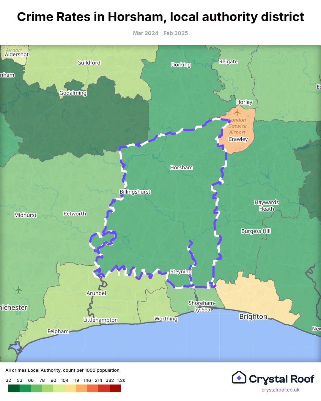 Crime rate ratings in Horsham (local authority district)