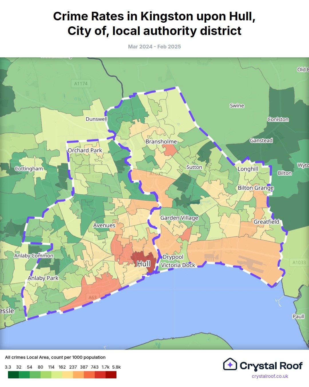 Crime rate ratings in Kingston upon Hull, City of (local authority district)