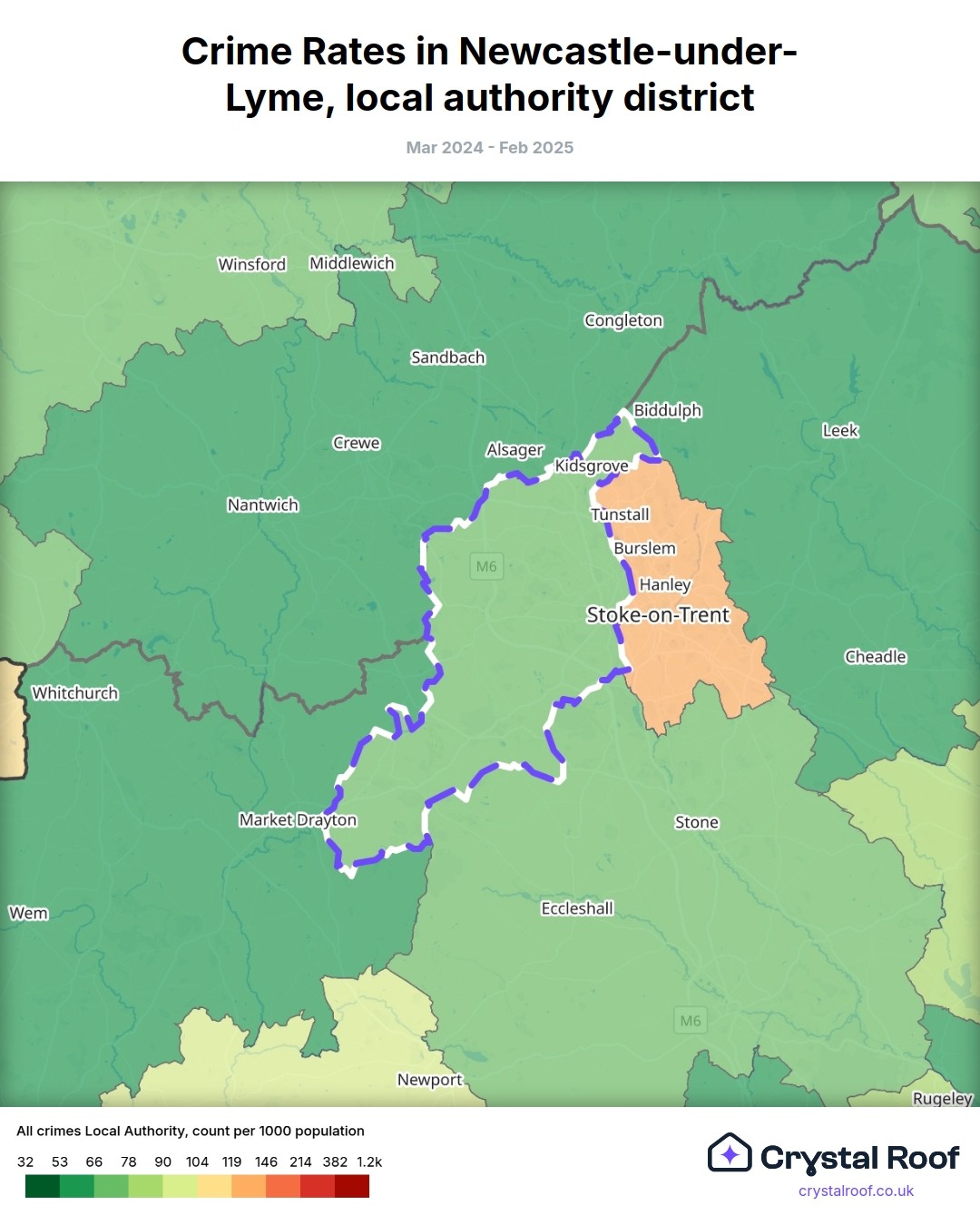 Crime Rates in Newcastle-under-Lyme, local authority district