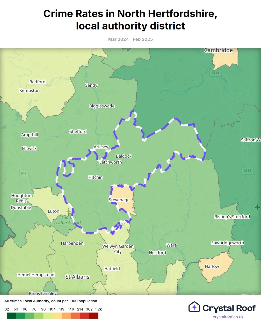 Crime Rates in North Hertfordshire, local authority district