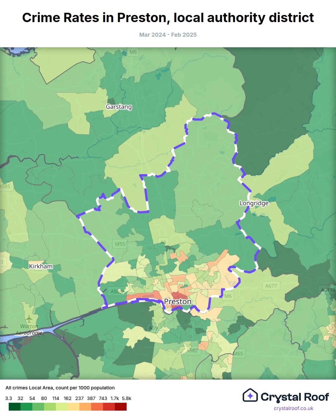 Crime rate ratings in Preston (local authority district)