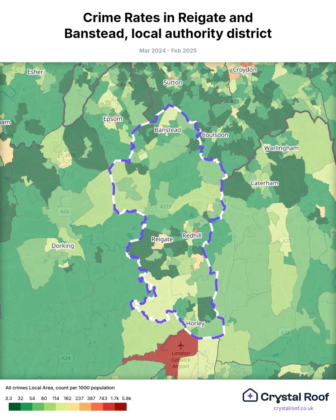 Crime rate ratings in Reigate and Banstead (local authority district)