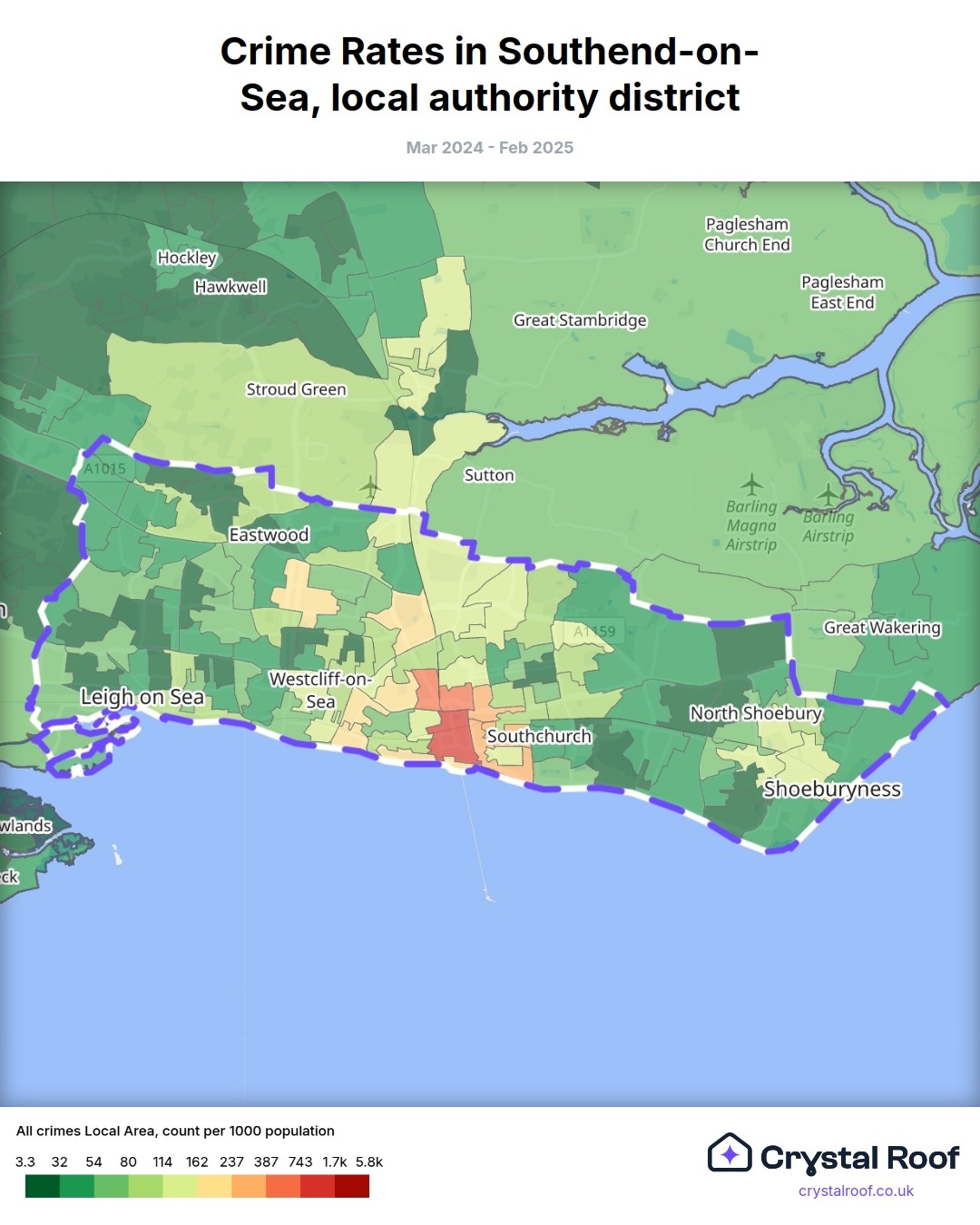 Crime rate ratings in Southend-on-Sea (local authority district)