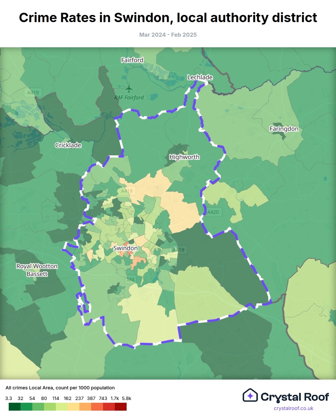 Crime rate ratings in Swindon (local authority district)