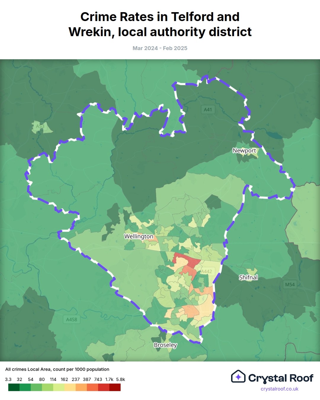 Crime rate ratings in Telford and Wrekin (local authority district)