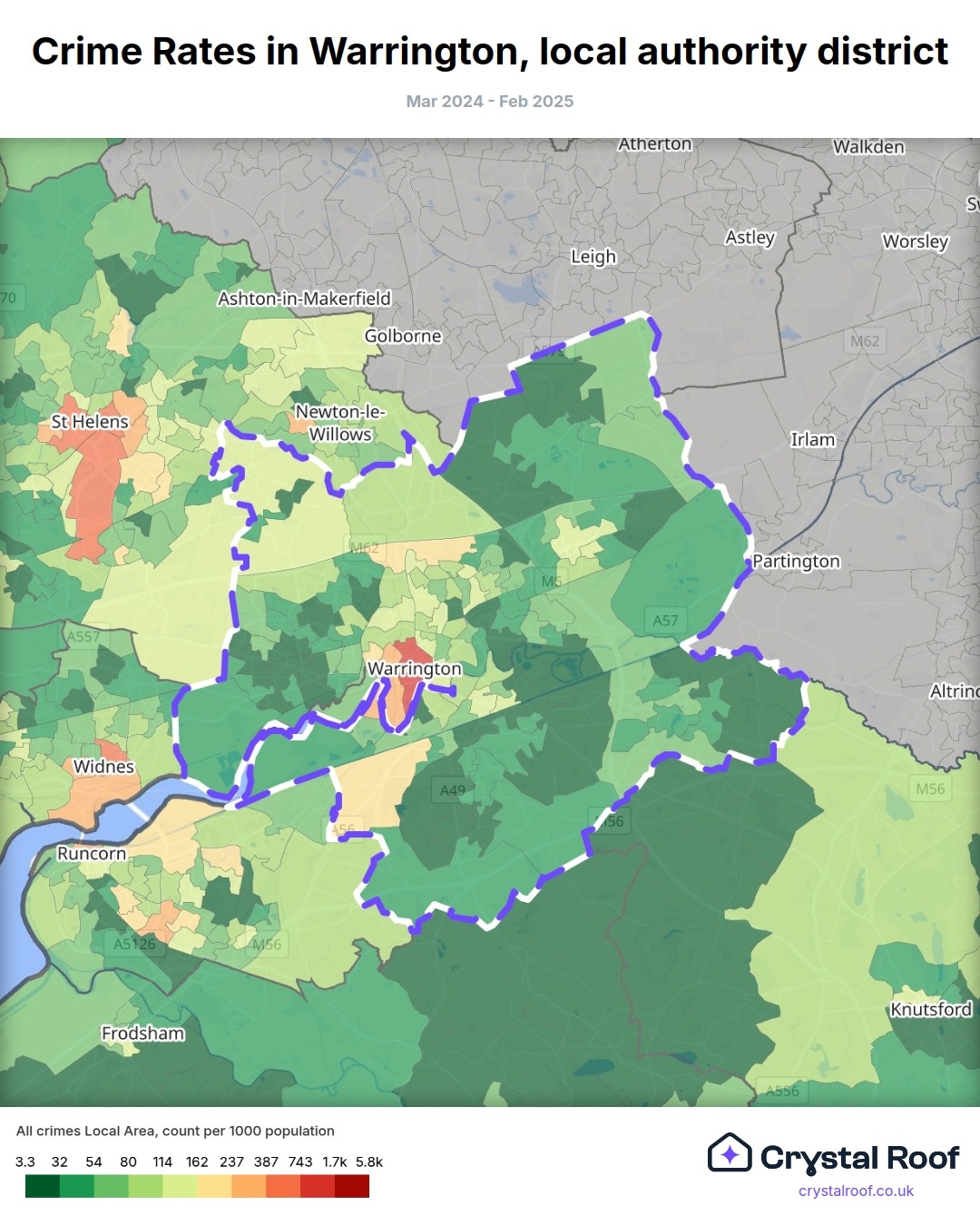 Crime Rates in Warrington, local authority district