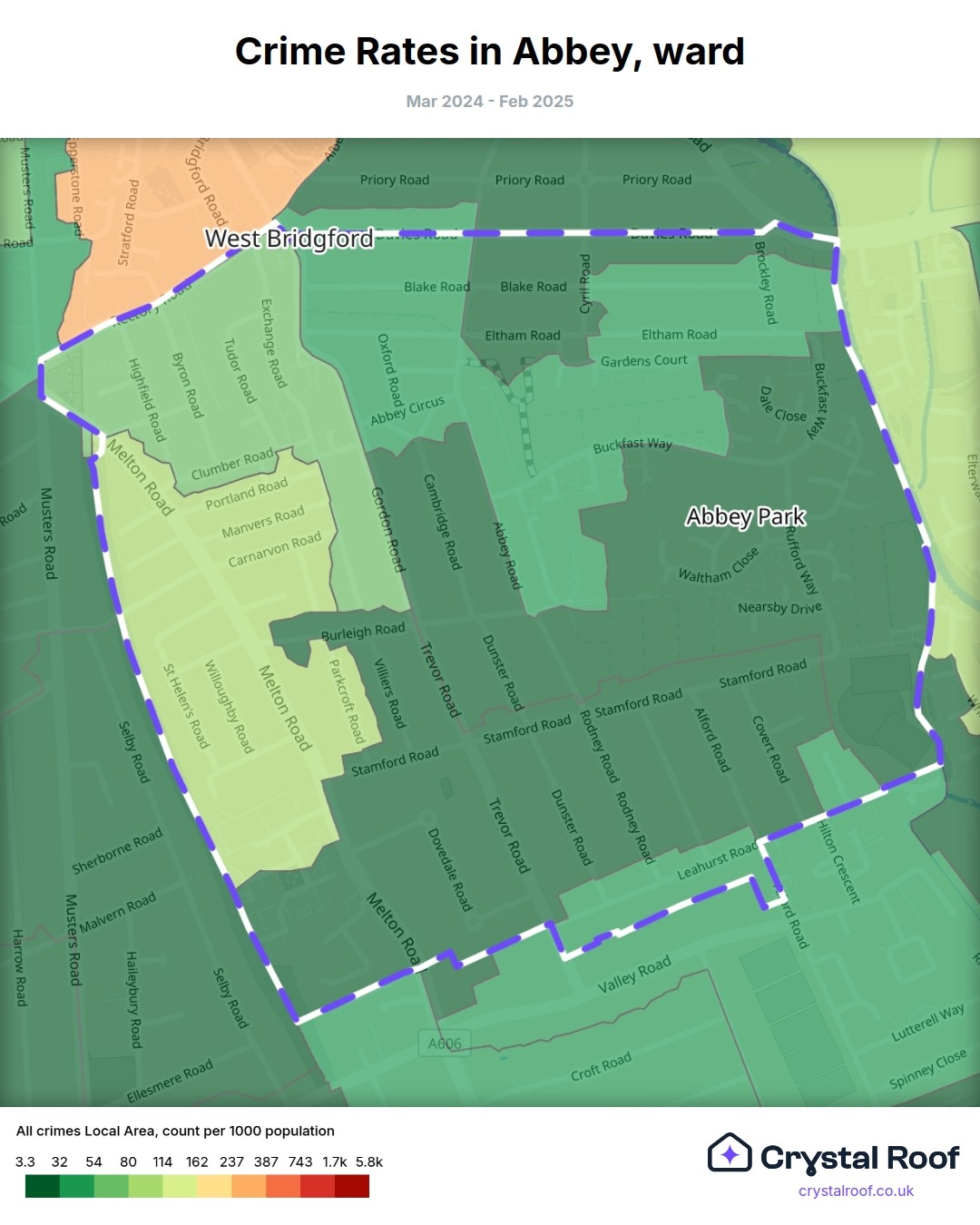 Abbey, (ward) includes areas with the following crime ratings (see map):