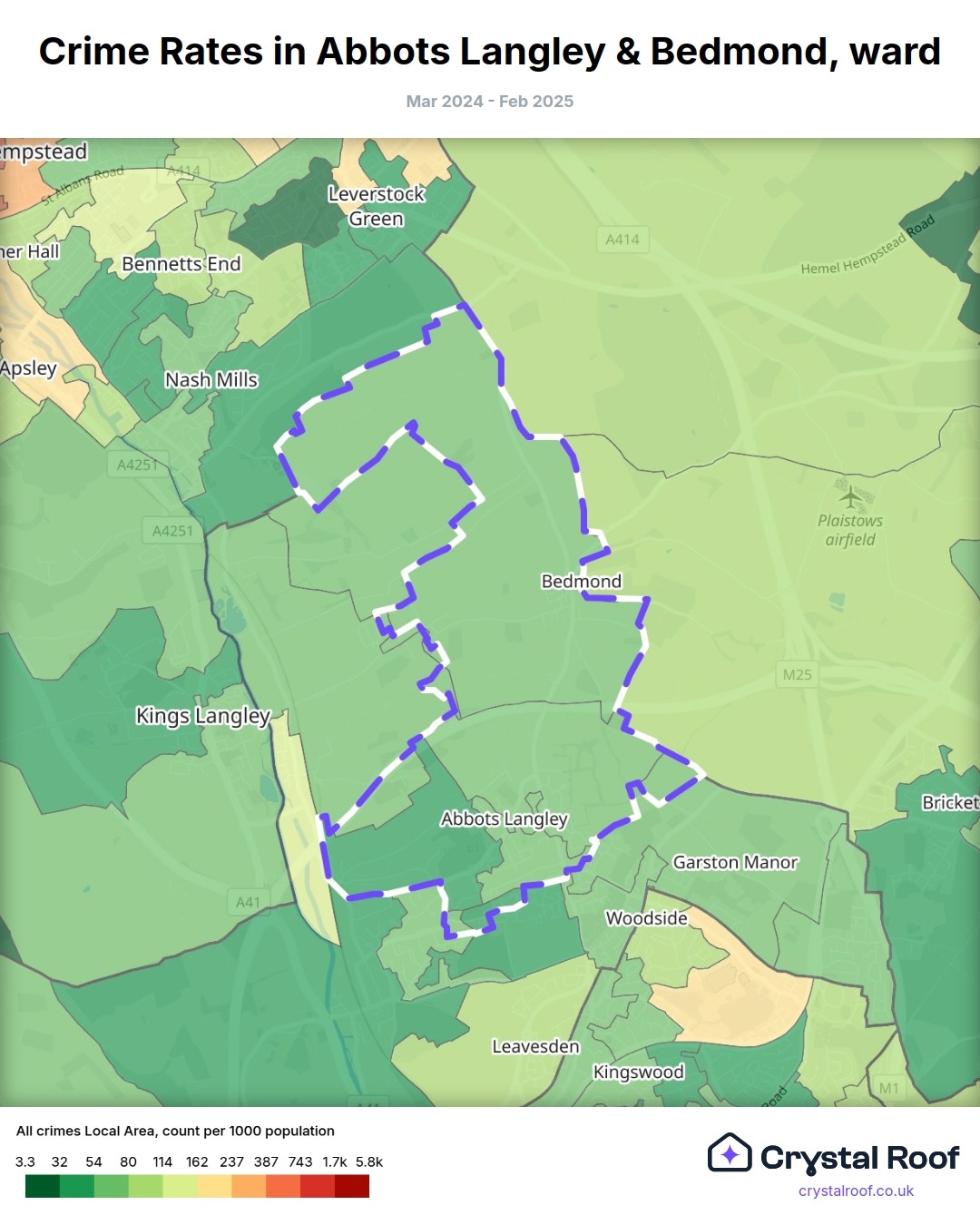 Abbots Langley & Bedmond, (ward) includes areas with the following crime ratings (see map):
