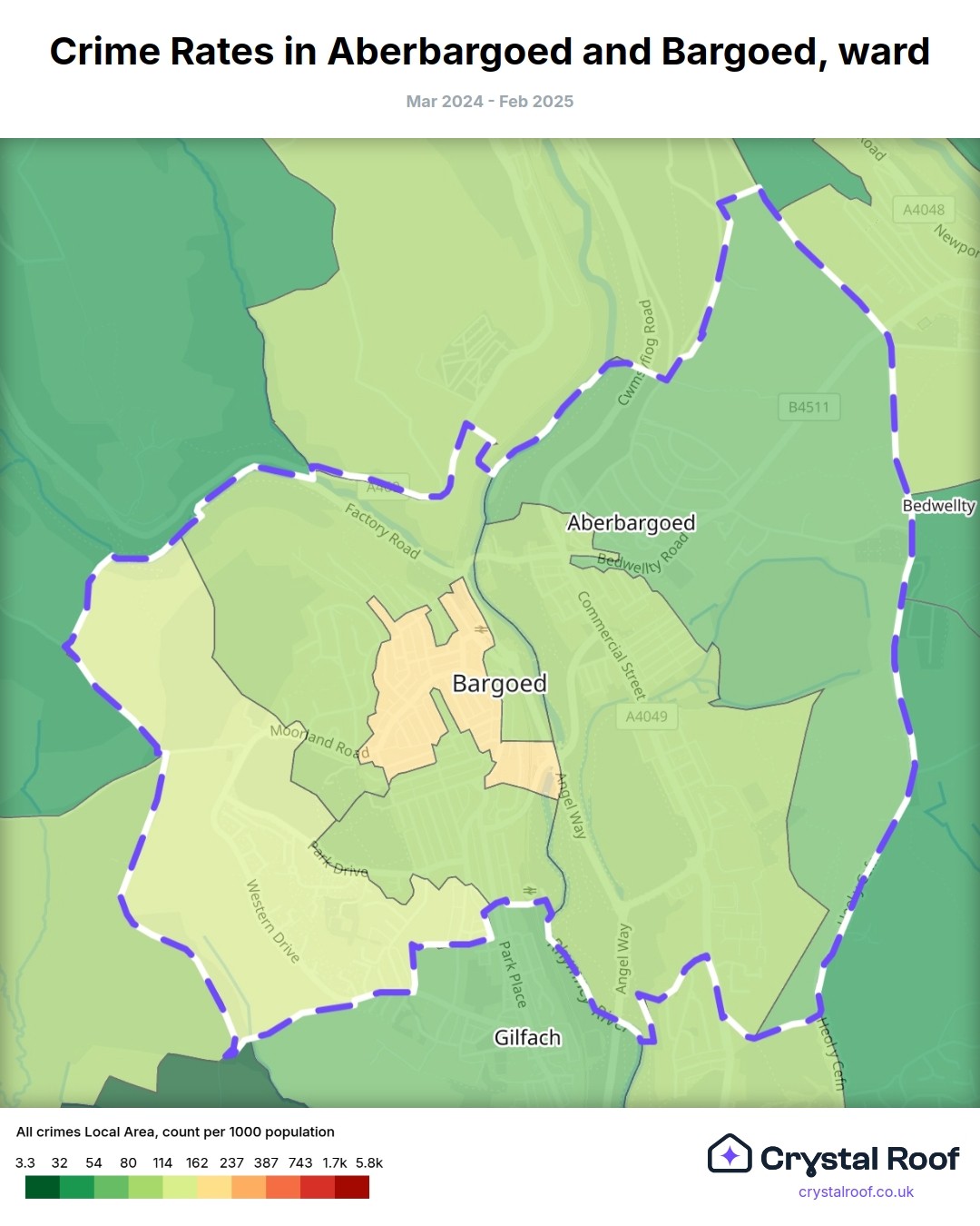 Aberbargoed and Bargoed, (ward) includes areas with the following crime ratings (see map):