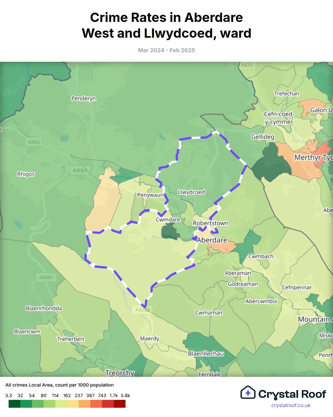 Aberdare West and Llwydcoed, (ward) includes areas with the following crime ratings (see map):