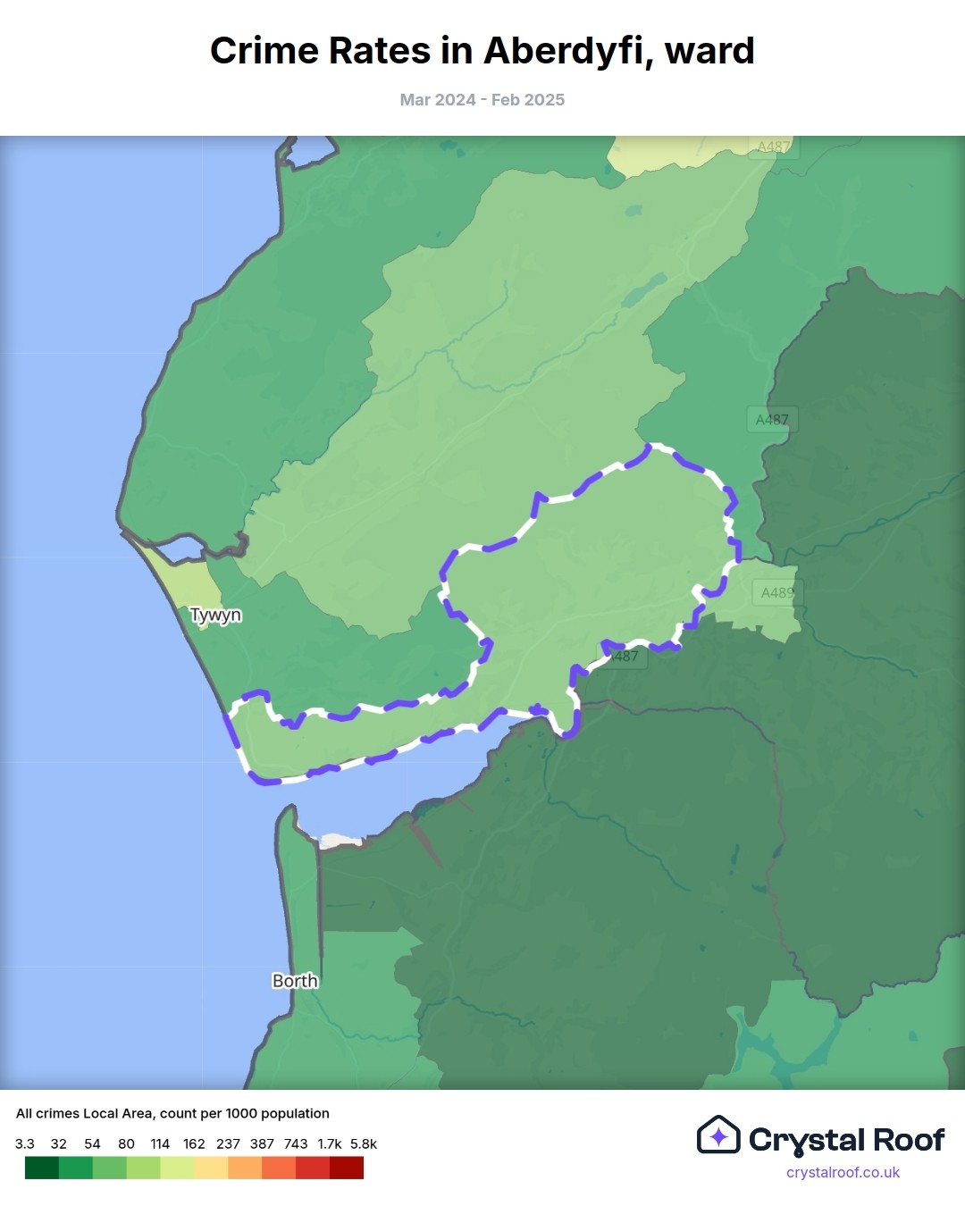 Aberdyfi, (ward) includes areas with the following crime ratings (see map):