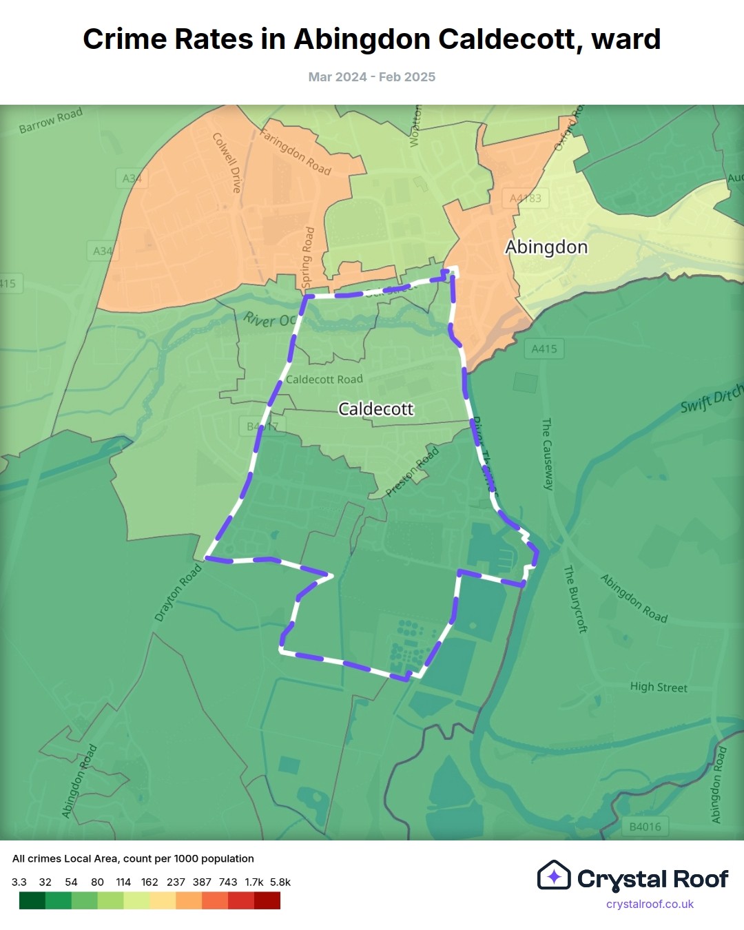 Abingdon Caldecott, (ward) includes areas with the following crime ratings (see map):