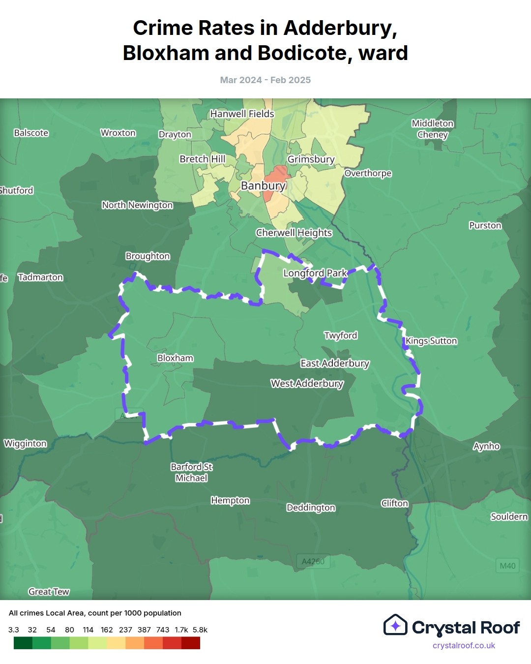 Adderbury, Bloxham and Bodicote, (ward) includes areas with the following crime ratings (see map):