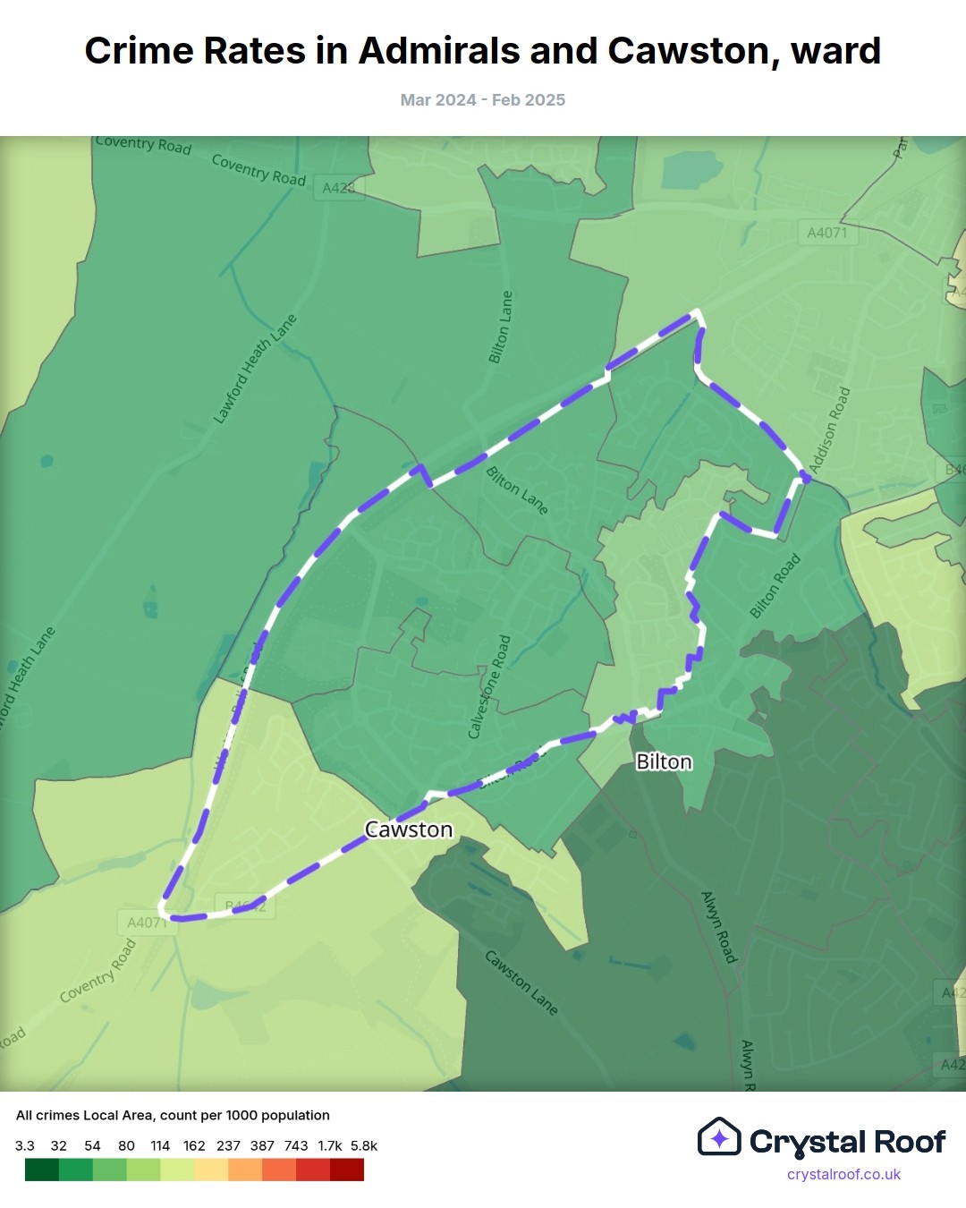 Admirals and Cawston, (ward) includes areas with the following crime ratings (see map):
