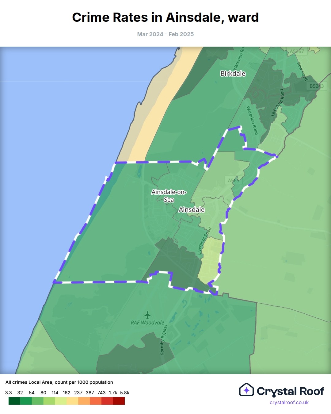 Ainsdale, (ward) includes areas with the following crime ratings (see map):