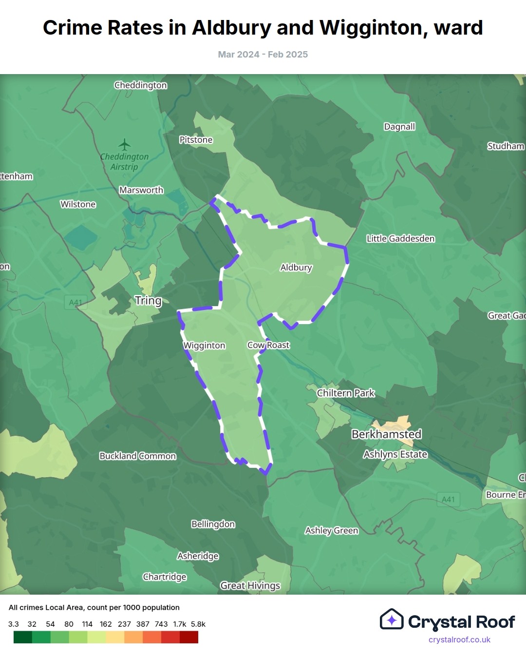 Aldbury and Wigginton, (ward) includes areas with the following crime ratings (see map):
