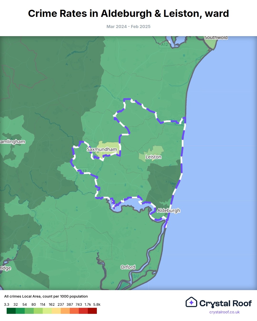 Aldeburgh & Leiston, (ward) includes areas with the following crime ratings (see map):