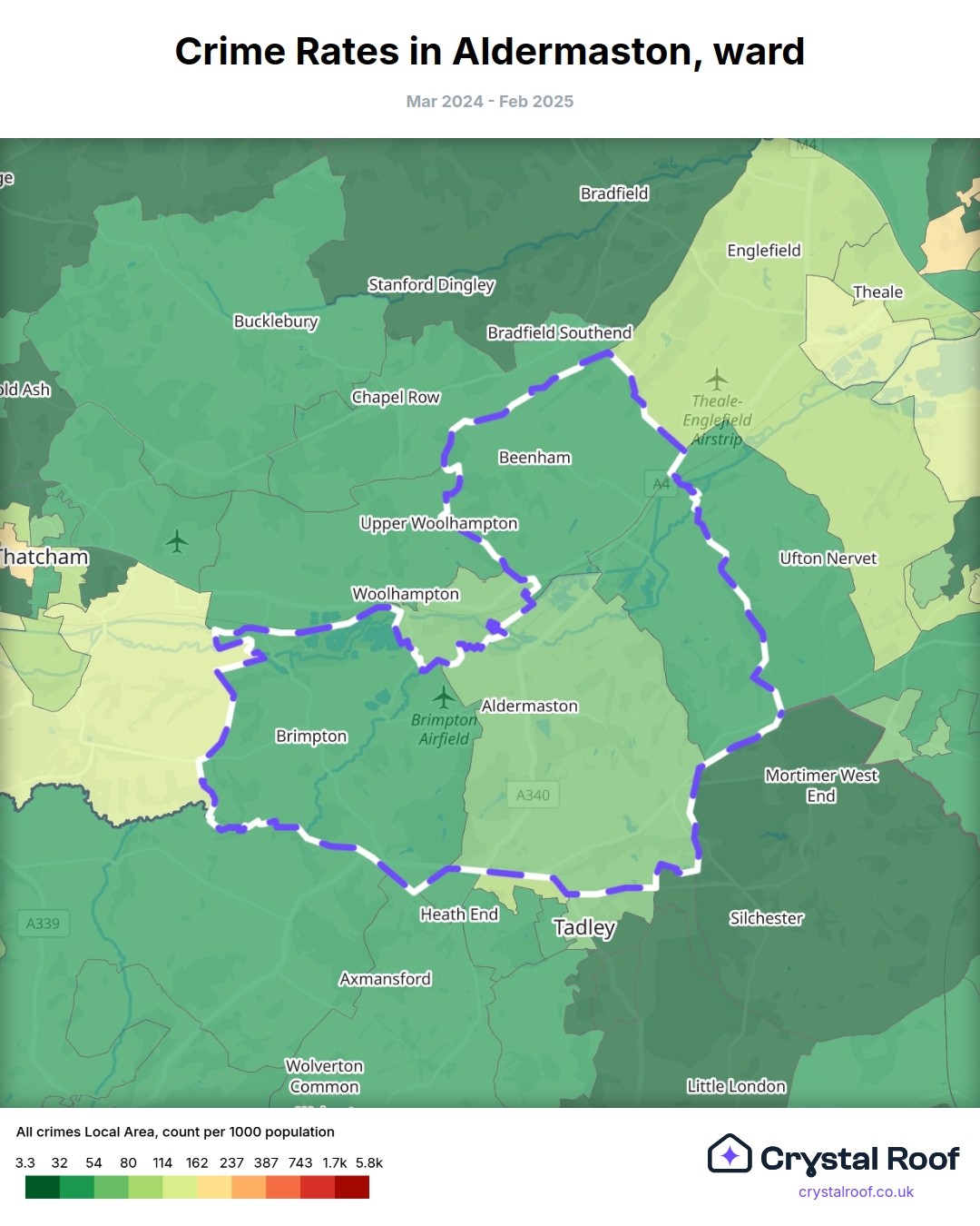 Aldermaston, (ward) includes areas with the following crime ratings (see map):