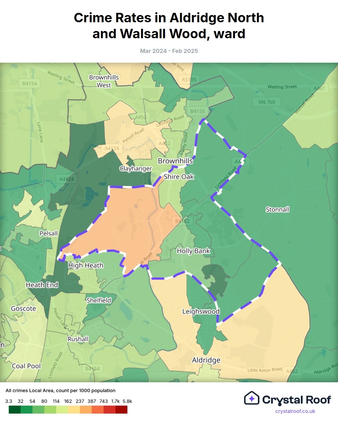 Aldridge North and Walsall Wood, (ward) includes areas with the following crime ratings (see map):