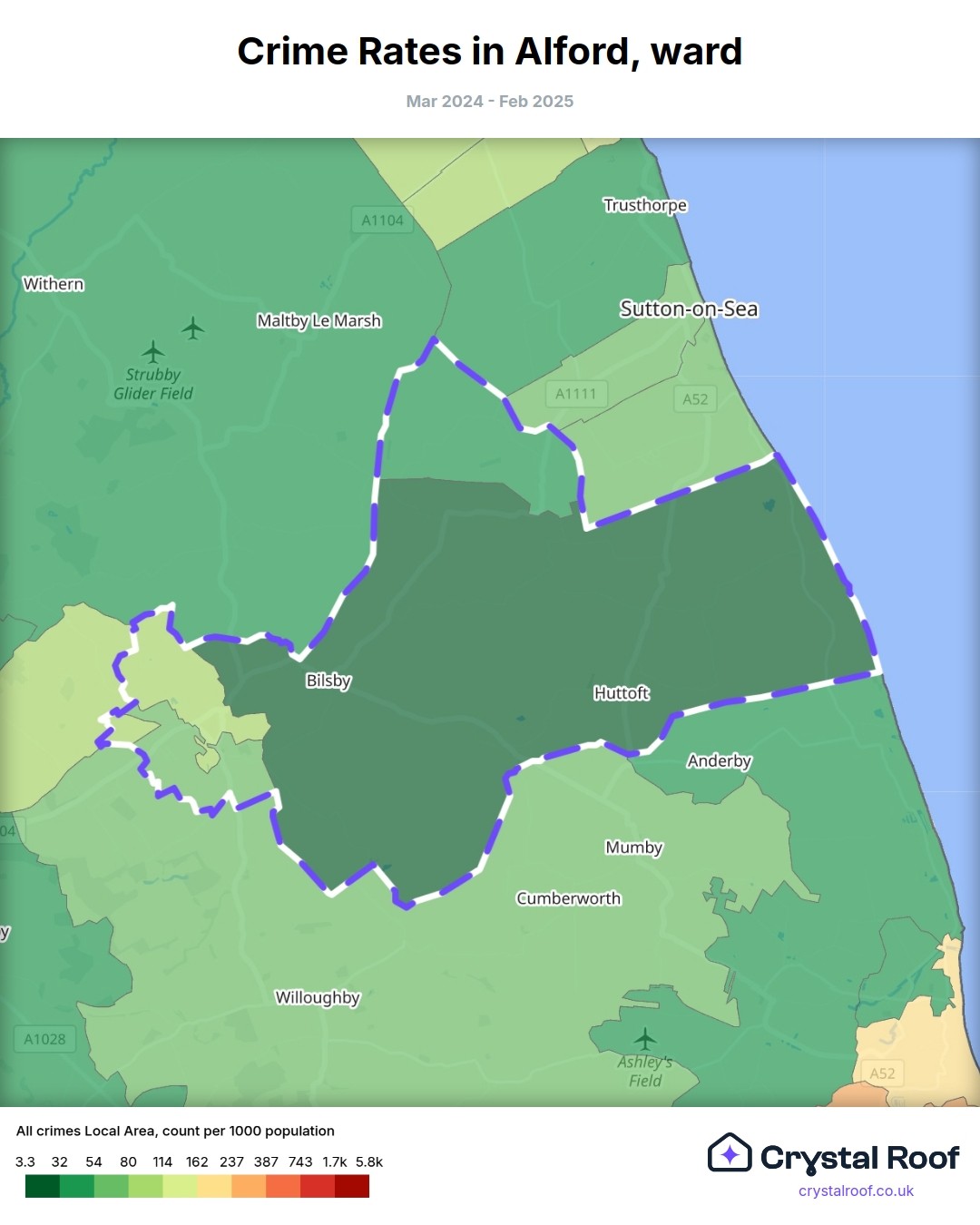 Alford, (ward) includes areas with the following crime ratings (see map):