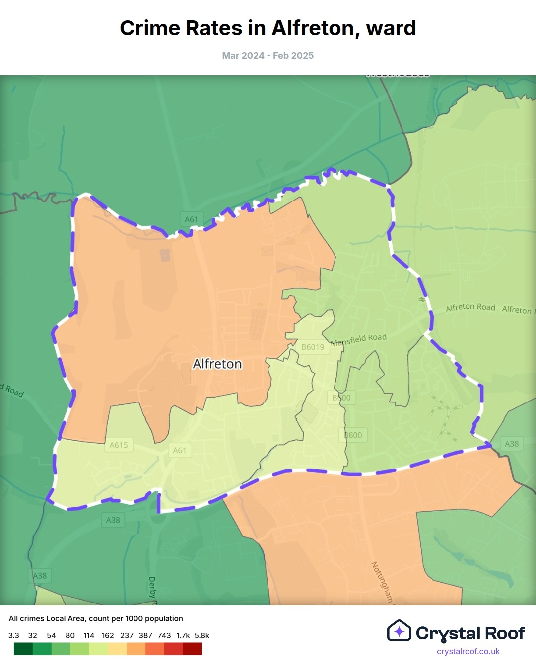 Alfreton, (ward) includes areas with the following crime ratings (see map):