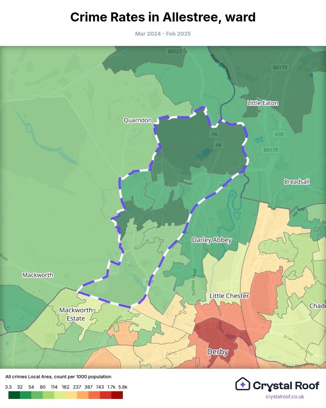 Allestree, (ward) includes areas with the following crime ratings (see map):