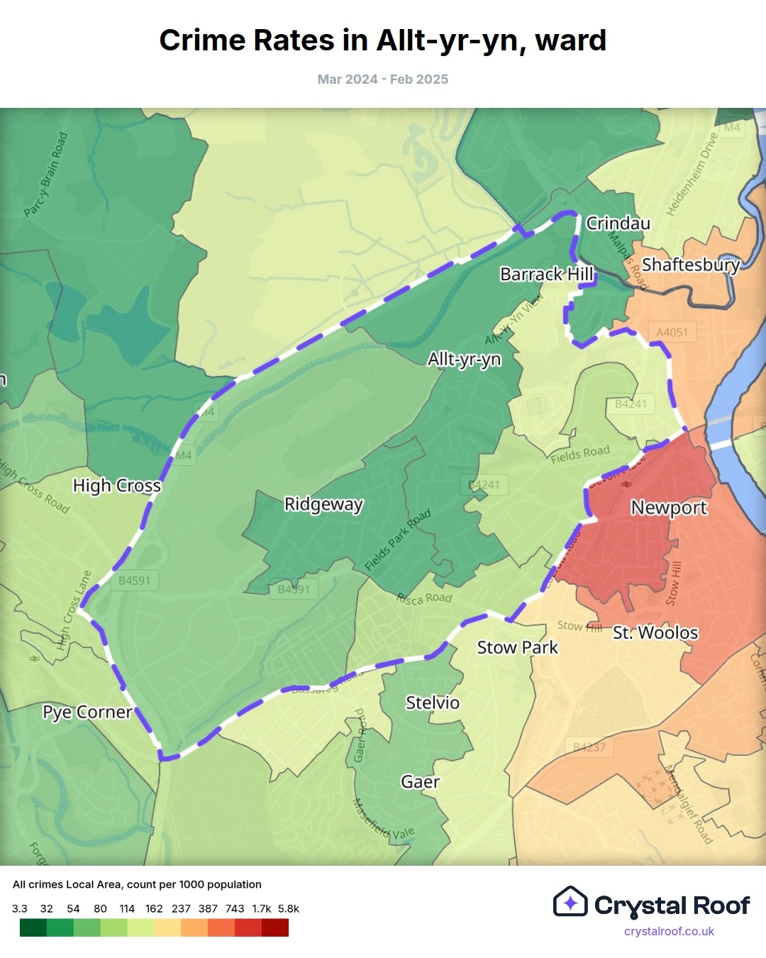 Allt-yr-yn, (ward) includes areas with the following crime ratings (see map):