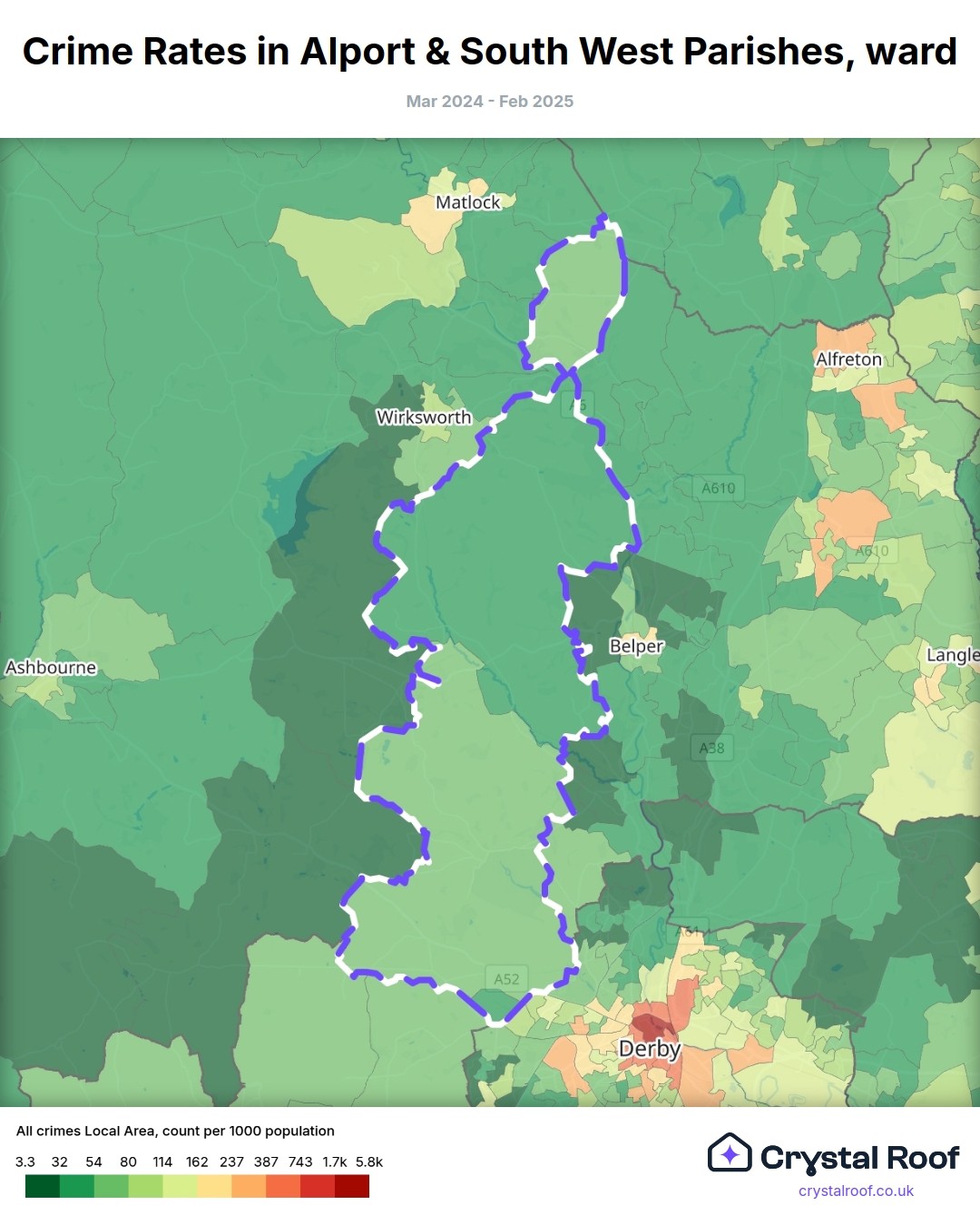 Alport & South West Parishes, (ward) includes areas with the following crime ratings (see map):