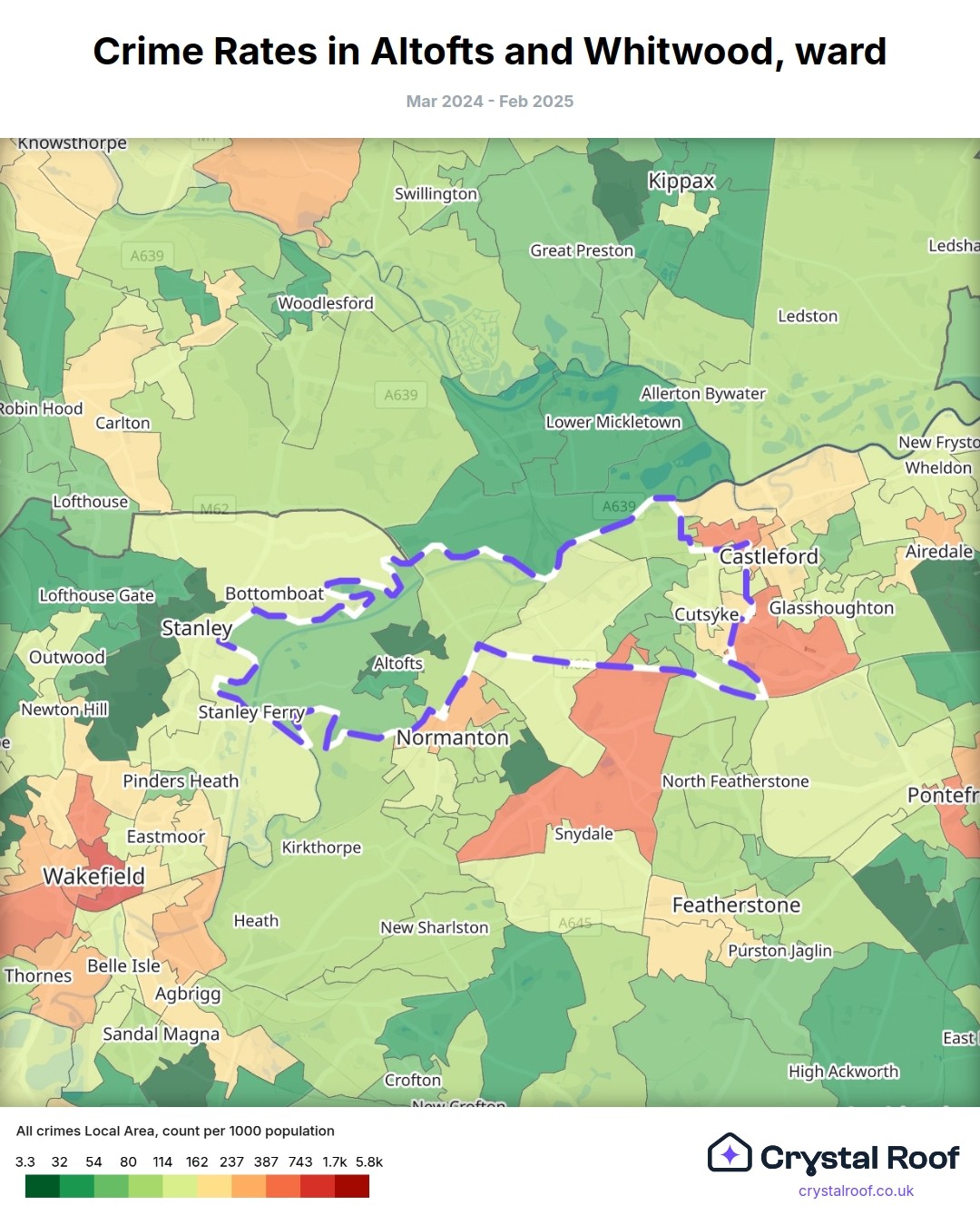 Altofts and Whitwood, (ward) includes areas with the following crime ratings (see map):
