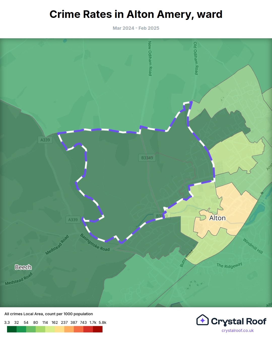 Alton Amery, (ward) includes areas with the following crime ratings (see map):