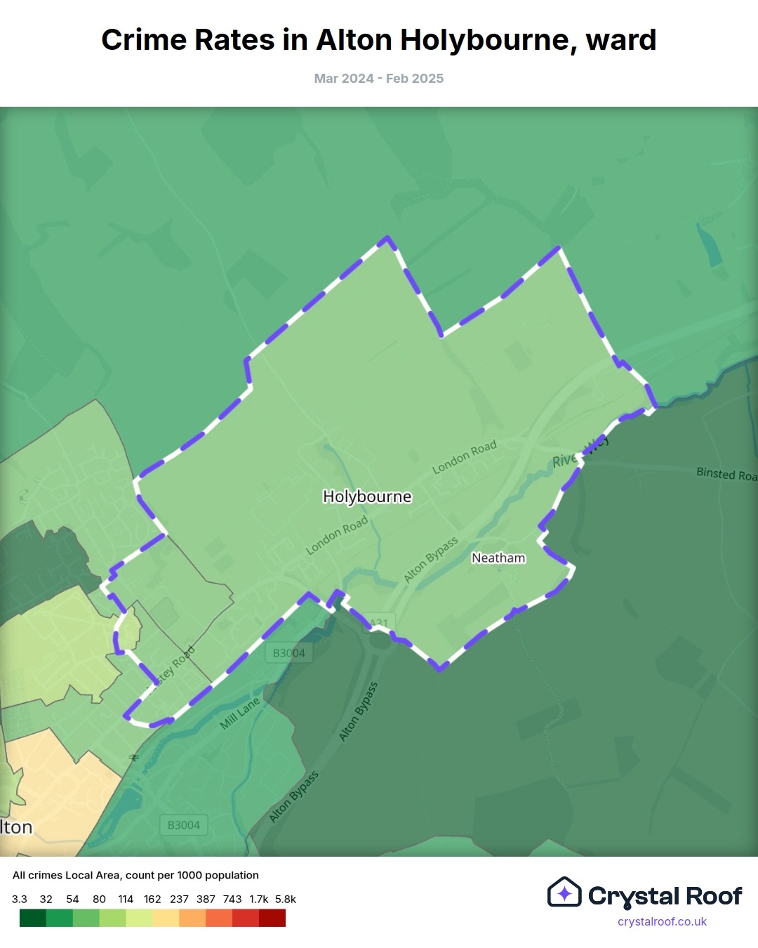 Alton Holybourne, (ward) includes areas with the following crime ratings (see map):