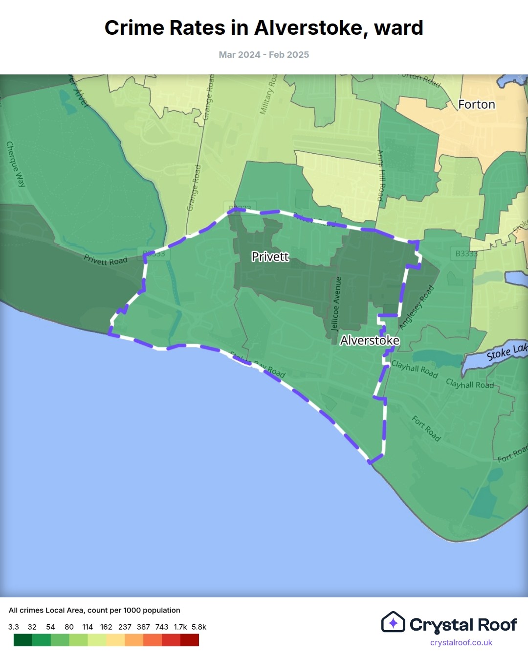 Alverstoke, (ward) includes areas with the following crime ratings (see map):