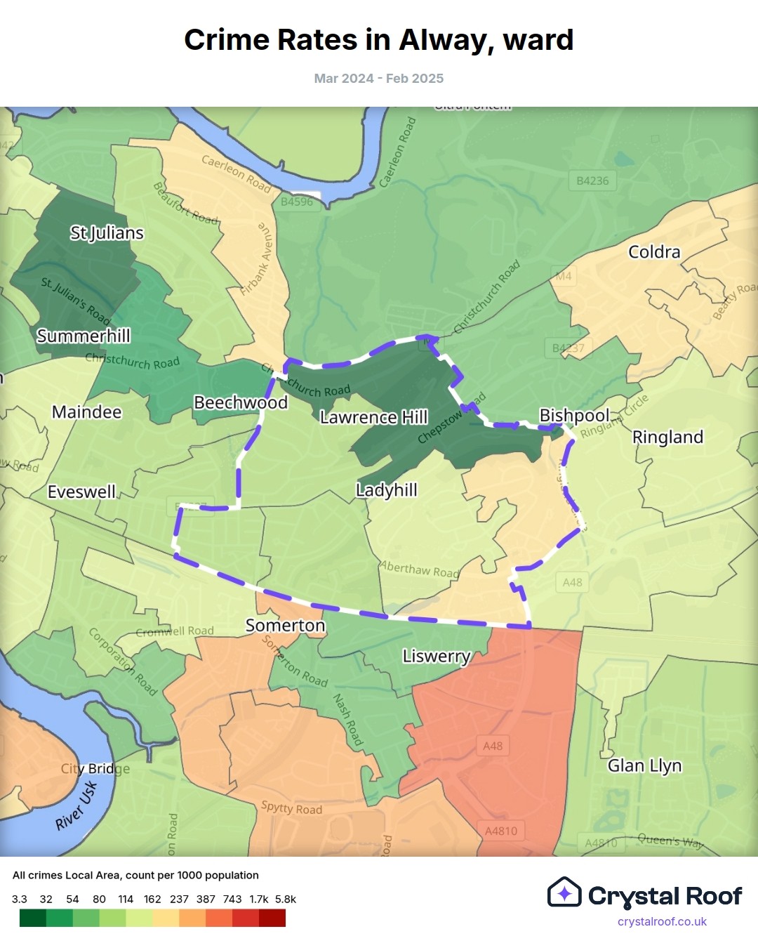 Alway, (ward) includes areas with the following crime ratings (see map):