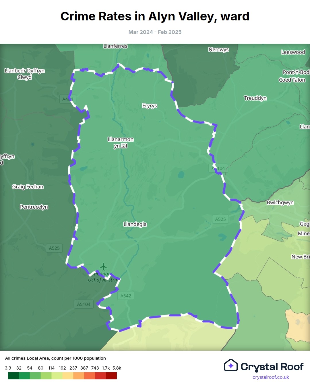 Alyn Valley, (ward) includes areas with the following crime ratings (see map):