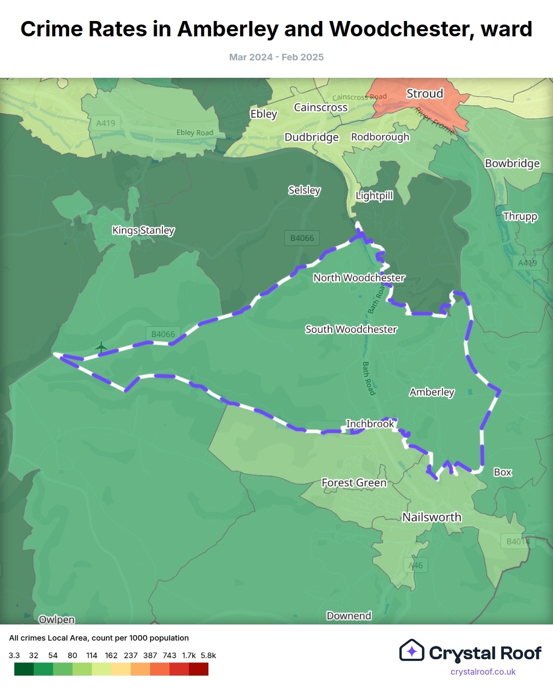Amberley and Woodchester, (ward) includes areas with the following crime ratings (see map):